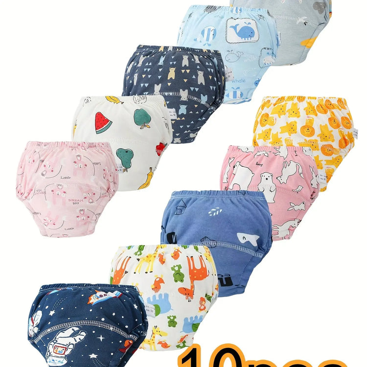 10pcs Baby Training Pants - Breathable Mid-Rise Diaper Training Pants with Cute Animal & Holiday Patterns Soft Stretchy Fabric