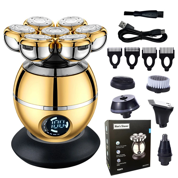 Newest 5-in-1 Electric Shaver 7D Floating Cutter Head Bald Hair Clipper Wireless Charging Men Nose Trimmer Electric Beard Razor