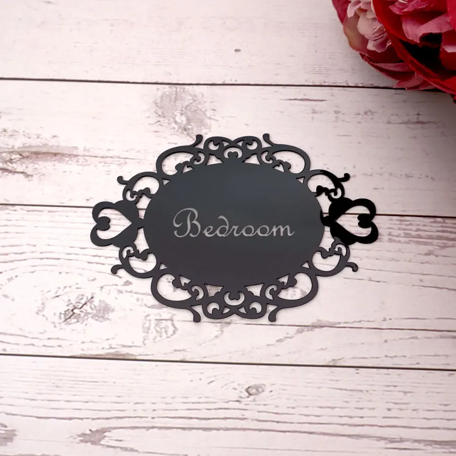 Decorative oval mirror sticker for door signage in bedroom or bath